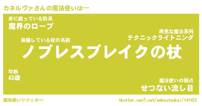 | 伝説のあだ名 | 『封印されし傭兵カネルヴァ』 |