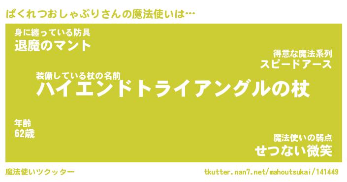 | 男性向けラノベタイトル風あだ名 | 『バクレツオシャブリアートオンライン』 |