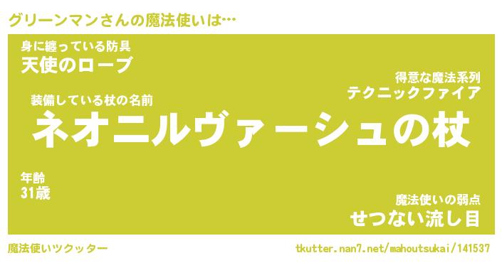 | 男性向けラノベタイトル風あだ名 | 『グリーンマンの憂鬱』 |