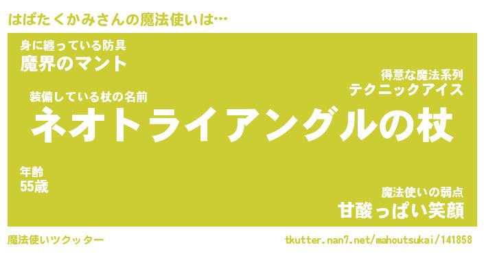 | ヒーロー風カッコイイあだ名 | 『スーパーハバタクカミ』『幻影騎士ハバ』 |