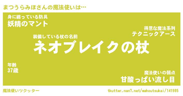 | 男性向けラノベタイトル風あだ名 | 『マツウラミホアートオンライン』 |