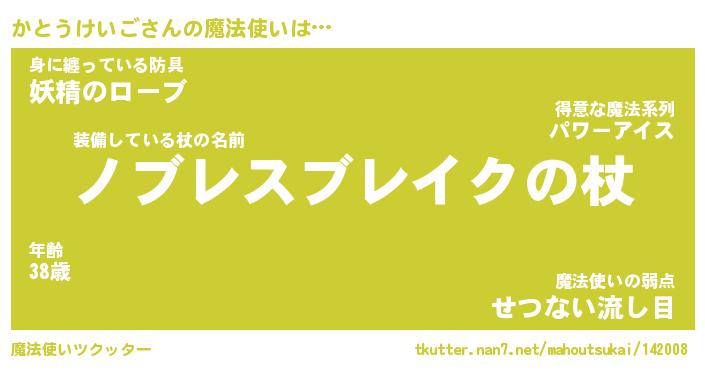 | 胡散臭い通販商品みたいなあだ名 | 『億万長者になれる水晶球…その名も「かとうけいご」』 |