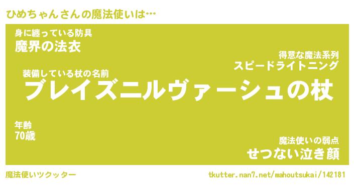 | ファンタジー風あだ名 | 『ヒメフェル』『エターナルヒメチャンー』 |