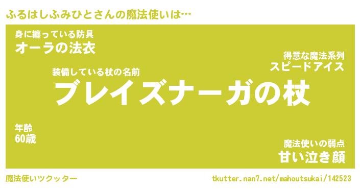 | 胡散臭い通販商品みたいなあだ名 | 『必ず成功する霊験あらたかなお札…その名も「ふるはしふみひと」』 |
