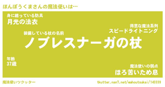 | 男性向けラノベタイトル風あだ名 | 『ホンポウクマアートオンライン』 |