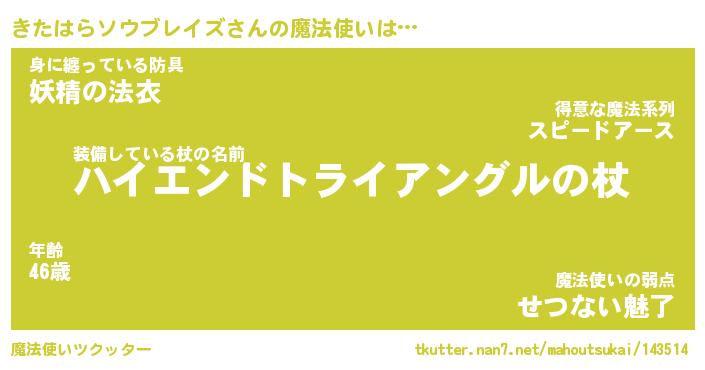 | 伝説のあだ名 | 『封印されし傭兵きたはらソウブレイズ』 |