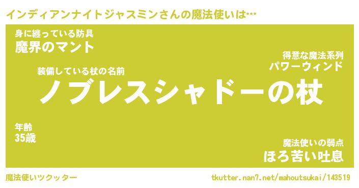| ヒーロー風カッコイイあだ名 | 『スーパーインディアンナイトジャスミン』 |