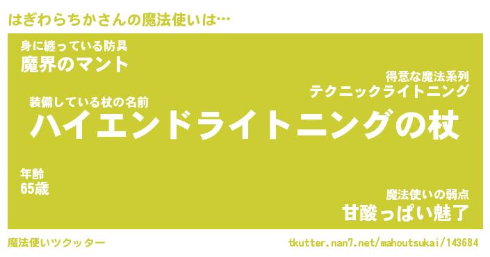 | ヒーロー風カッコイイあだ名 | 『スーパーハギワラチカ』『幻影騎士ハギ』 |