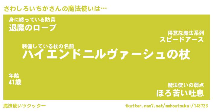 | 男性向けラノベタイトル風あだ名 | 『サワシロイチカアートオンライン』 |