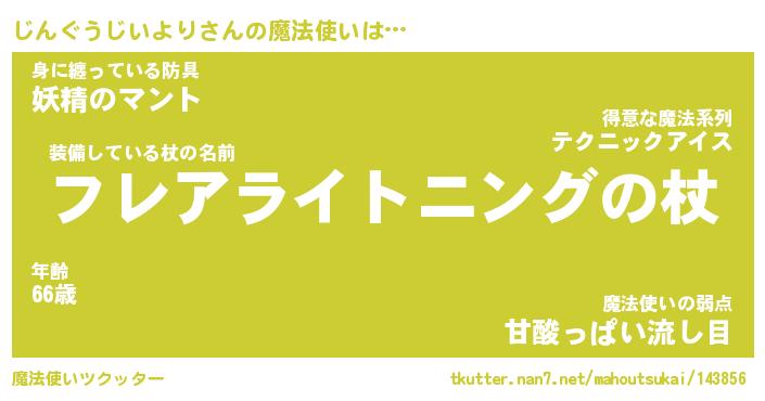 | 男性向けラノベタイトル風あだ名 | 『じんぐうじいよりの憂鬱』 |