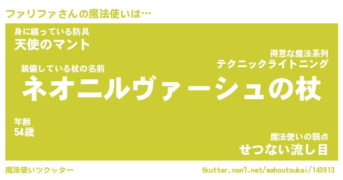 | ファンタジー風あだ名 | 『ファフェル』『エターナルファリファー』 |