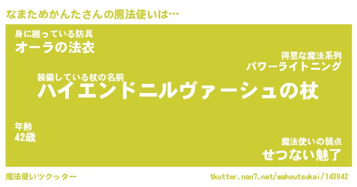 | 男性向けラノベタイトル風あだ名 | 『ナマタメカンタアートオンライン』 |