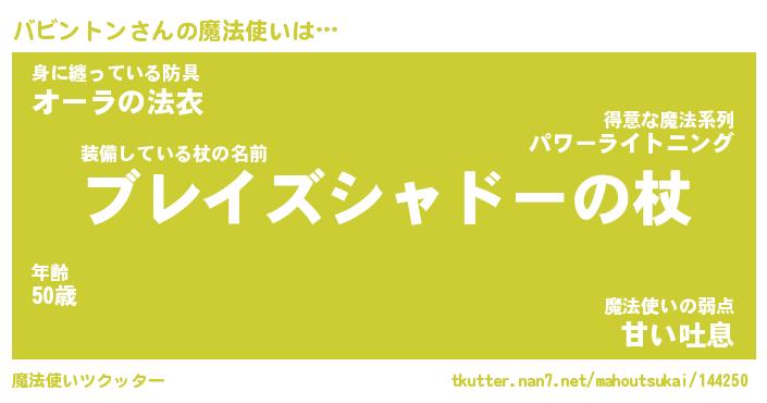 | ファンタジー風あだ名 | 『バビフェル』『エターナルバビントンー』 |