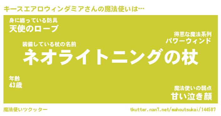 | 男性向けラノベタイトル風あだ名 | 『キースエアロウィンダミアアートオンライン』 |