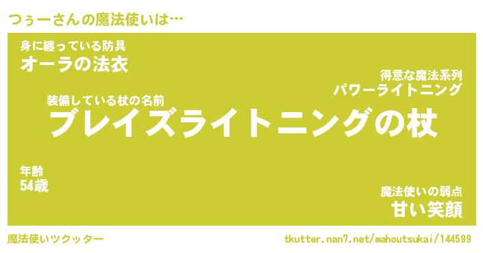 | ファンタジー風あだ名 | 『ツゥフェル』『エターナルツゥーー』 |