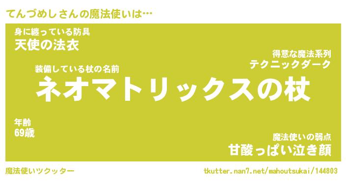 | 男性向けラノベタイトル風あだ名 | 『てんづめしの憂鬱』 |