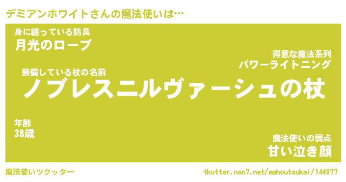 | 伝説のあだ名 | 『封印されしスナイパーデミアンホワイト』 |