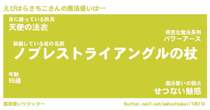 | ツイッター | えびはらさちこさんのツイッターID『namakemono_kun』 |