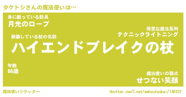 | ファンタジー風あだ名 | 『タケフェル』『エターナルタケトシー』 |