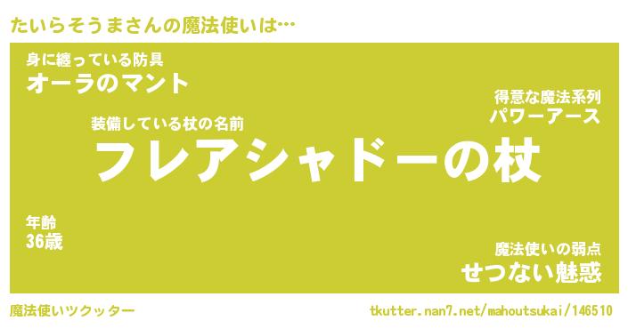 | 男性向けラノベタイトル風あだ名 | 『たいらそうまの憂鬱』 |