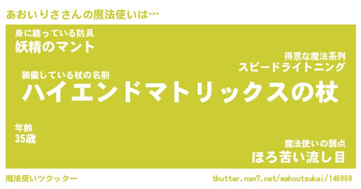 | ファンタジー風あだ名 | 『アオフェル』『エターナルアオイリサー』 |