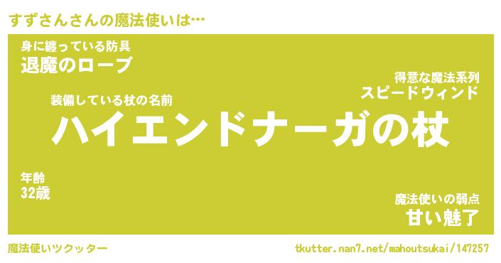 | ファンタジー風あだ名 | 『スズフェル』『エターナルスズサンー』 |