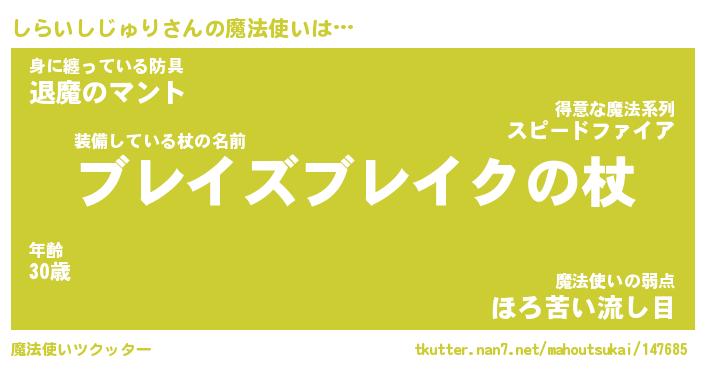 | 伝説のあだ名 | 『伝説の傭兵しらいしじゅり』 |