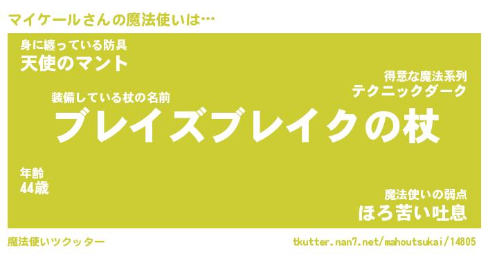 | 男性向けラノベタイトル風あだ名 | 『マイケールの憂鬱』 |