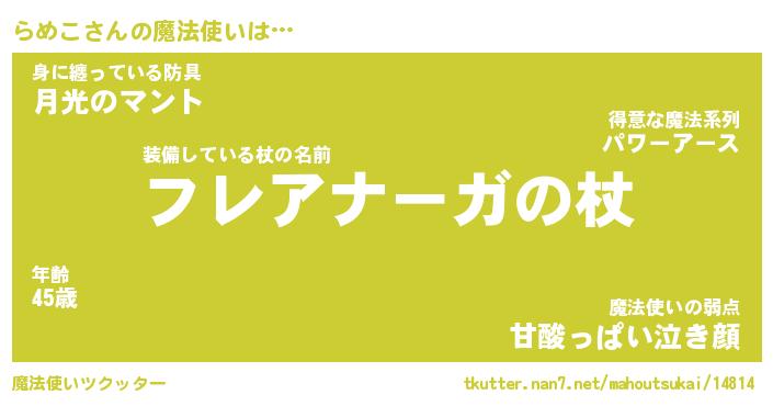 | ファンタジー風あだ名 | 『ラメフェル』『エターナルラメコー』 |