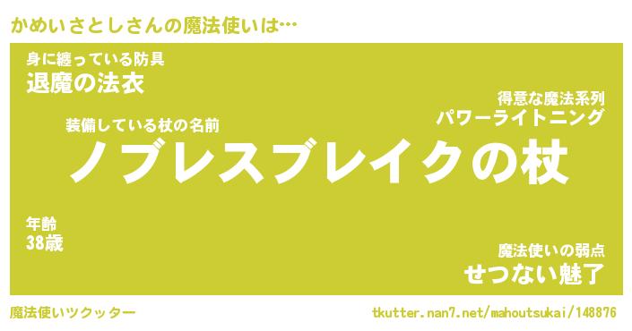 | ヒーロー風カッコイイあだ名 | 『スーパーカメイサトシ』『天弓騎士カメ』 |