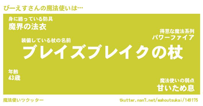 | ファンタジー風あだ名 | 『ビーフェル』『エターナルビーエスー』 |
