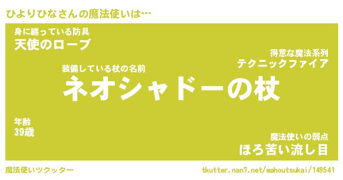 | ファンタジー風あだ名 | 『ヒヨフェル』『エターナルヒヨリヒナー』 |