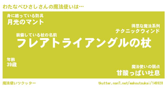 | ファンタジー風あだ名 | 『ワタフェル』『ファントムワタス』 |