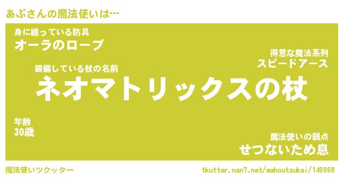 | ファンタジー風あだ名 | 『アプフェル』『エターナルアプー』 |