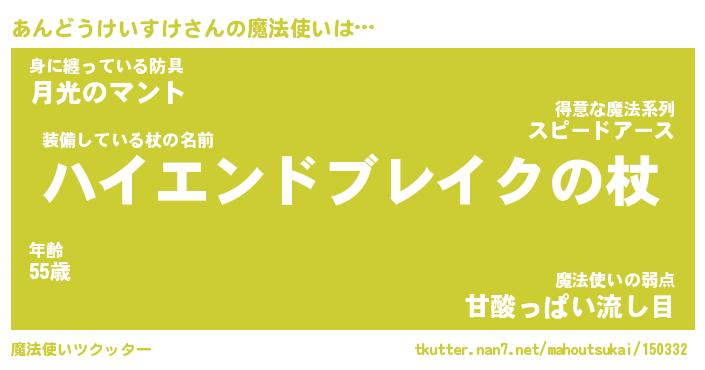 | 伝説のあだ名 | 『封印されし傭兵あんどうけいすけ』 |