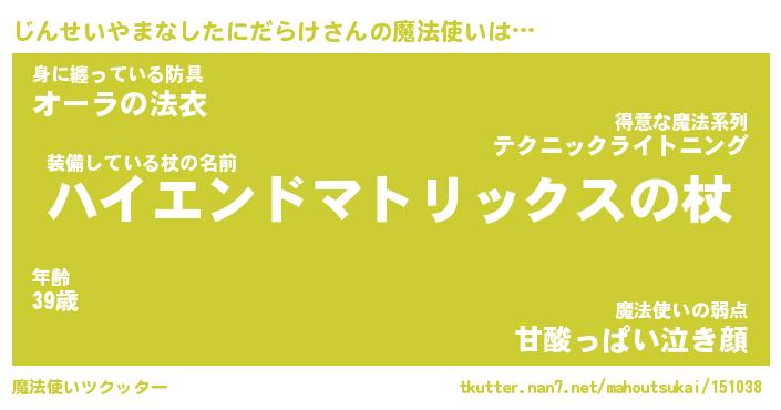 | 伝説のあだ名 | 『封印されし竜騎士じんせいやまなしたにだらけ』 |