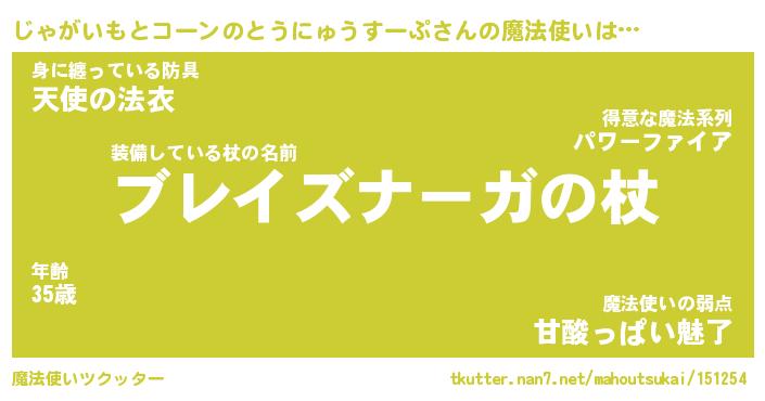 | 料理風あだ名 | 『節約★じゃがいもとコーンのとうにゅうすーぷと油揚げの玉子丼』 |