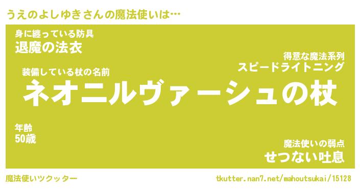 | ポケモン風あだ名 | 『ウエチュウ』『ウエノダネ』 |