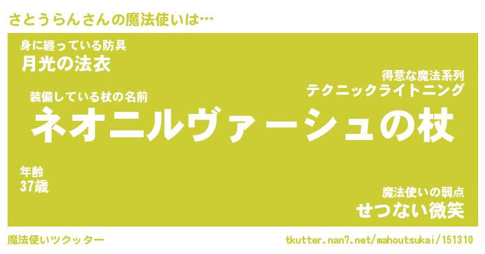 | ヒーロー風カッコイイあだ名 | 『スーパーサトウラン』『天弓騎士サト』 |