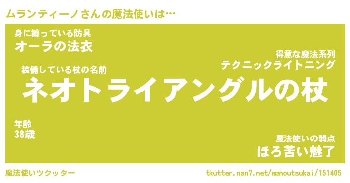 | 男性向けラノベタイトル風あだ名 | 『ムランティーノの憂鬱』 |