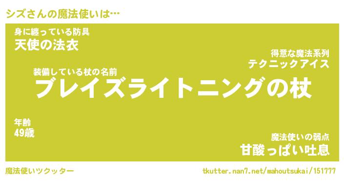 | ファンタジー風あだ名 | 『シズフェル』『エターナルシズー』 |