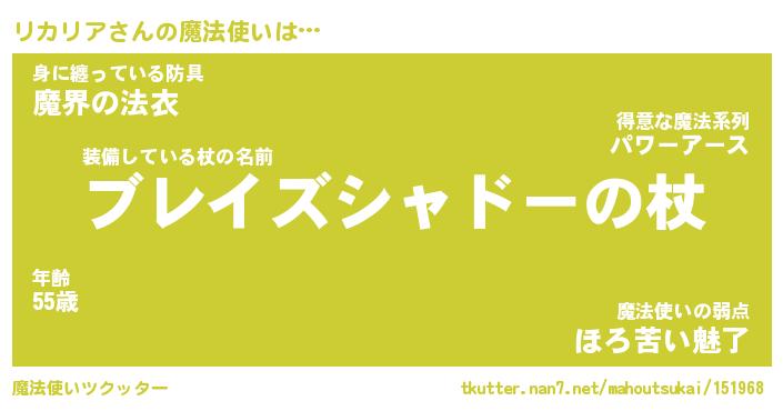 | ヒーロー風カッコイイあだ名 | 『スーパーリカリア』『魔戒騎士リカ』 |