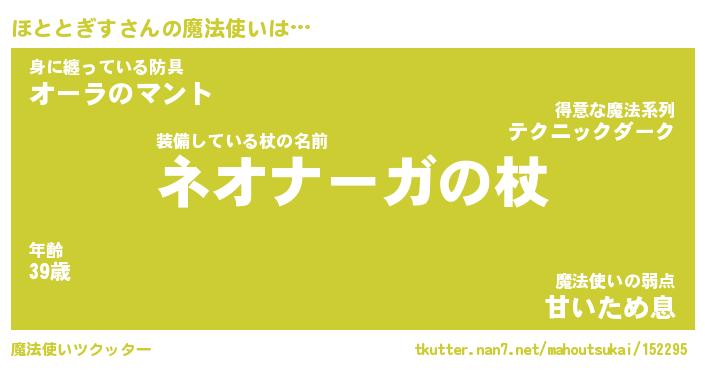 | ファンタジー風あだ名 | 『ホトフェル』『エターナルホトトギスー』 |