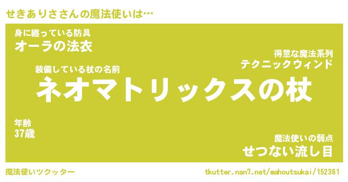 | ツイッター | せきありささんのツイッターID『katatsumuri_man』 |