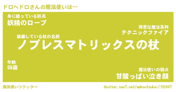 | ファンタジー風あだ名 | 『ドロフェル』『エターナルドロヘドロー』 |