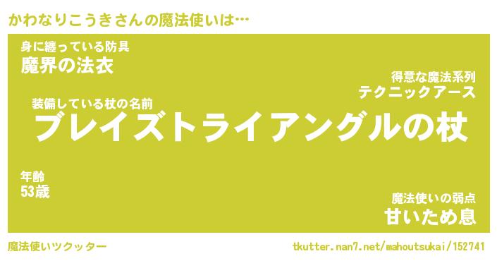 | ファンタジー風あだ名 | 『カワフェル』『ファントムカワス』 |