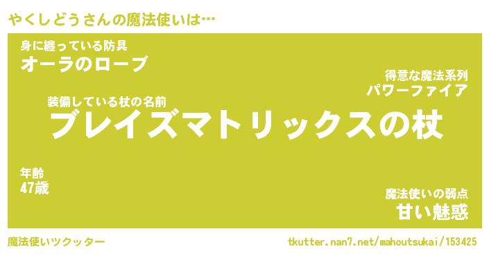 | ファンタジー風あだ名 | 『ヤクフェル』『エターナルヤクシドウー』 |