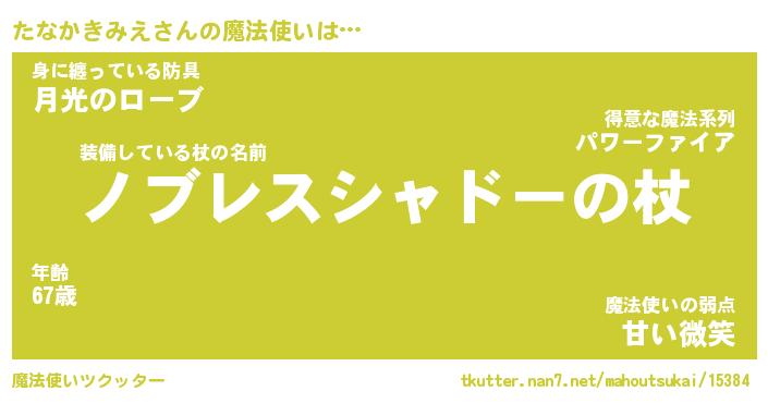 | ヒーロー風カッコイイあだ名 | 『スーパータナカキミエ』『暗黒騎士タナ』 |