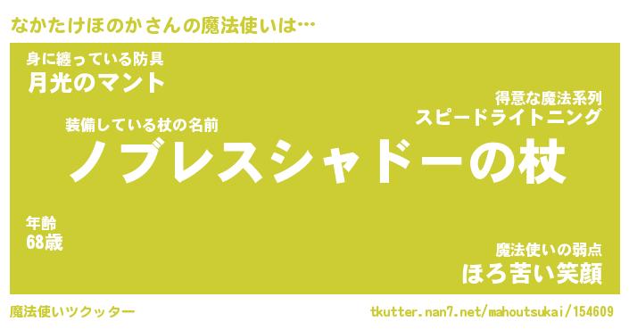 | ツイッター | なかたけほのかさんのツイッターID『namakemono_star』 |