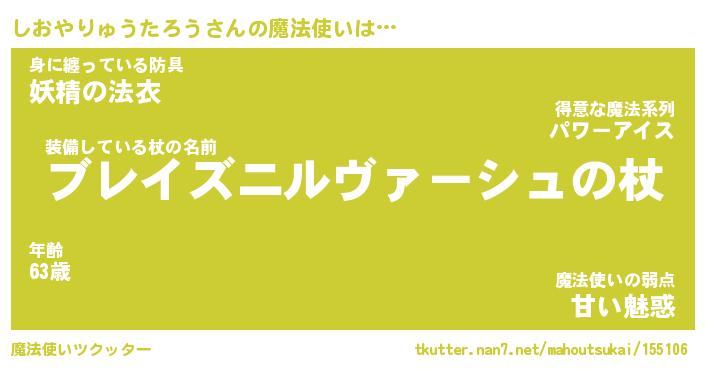 | 肩書あだ名 | 『しおやりゅうたろう御曹司』 |